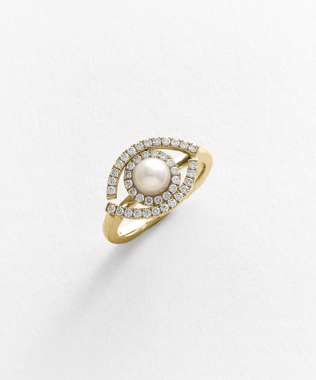 Double Bar Pearl and Diamond Ring