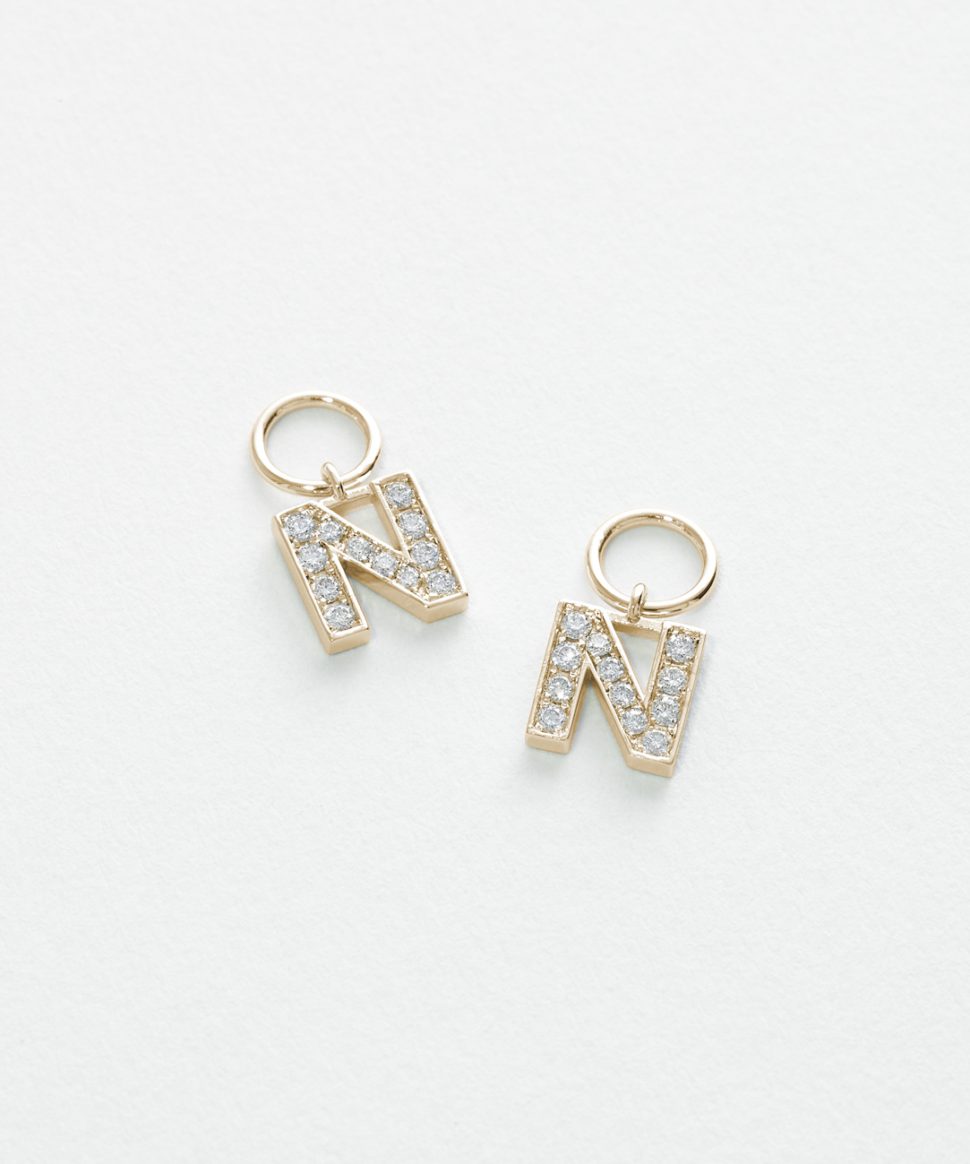 Diamond and Black Diamond Reversible Mini Huggie Earring Initial Charms (Single Charm)
