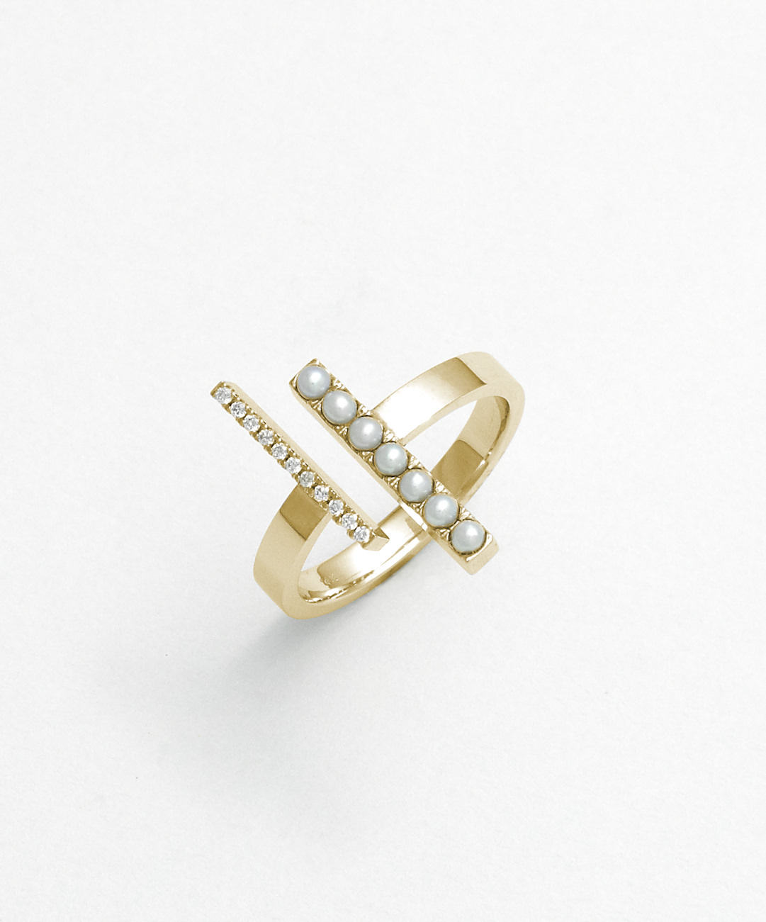 Double Bar Pearl and Diamond Ring