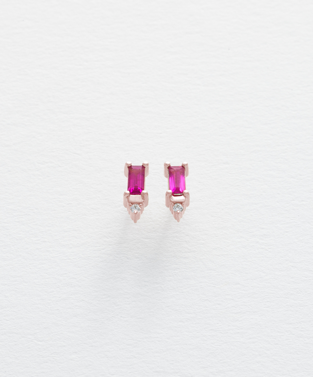 Pink Sapphire Baguette and Diamond Stud Earrings